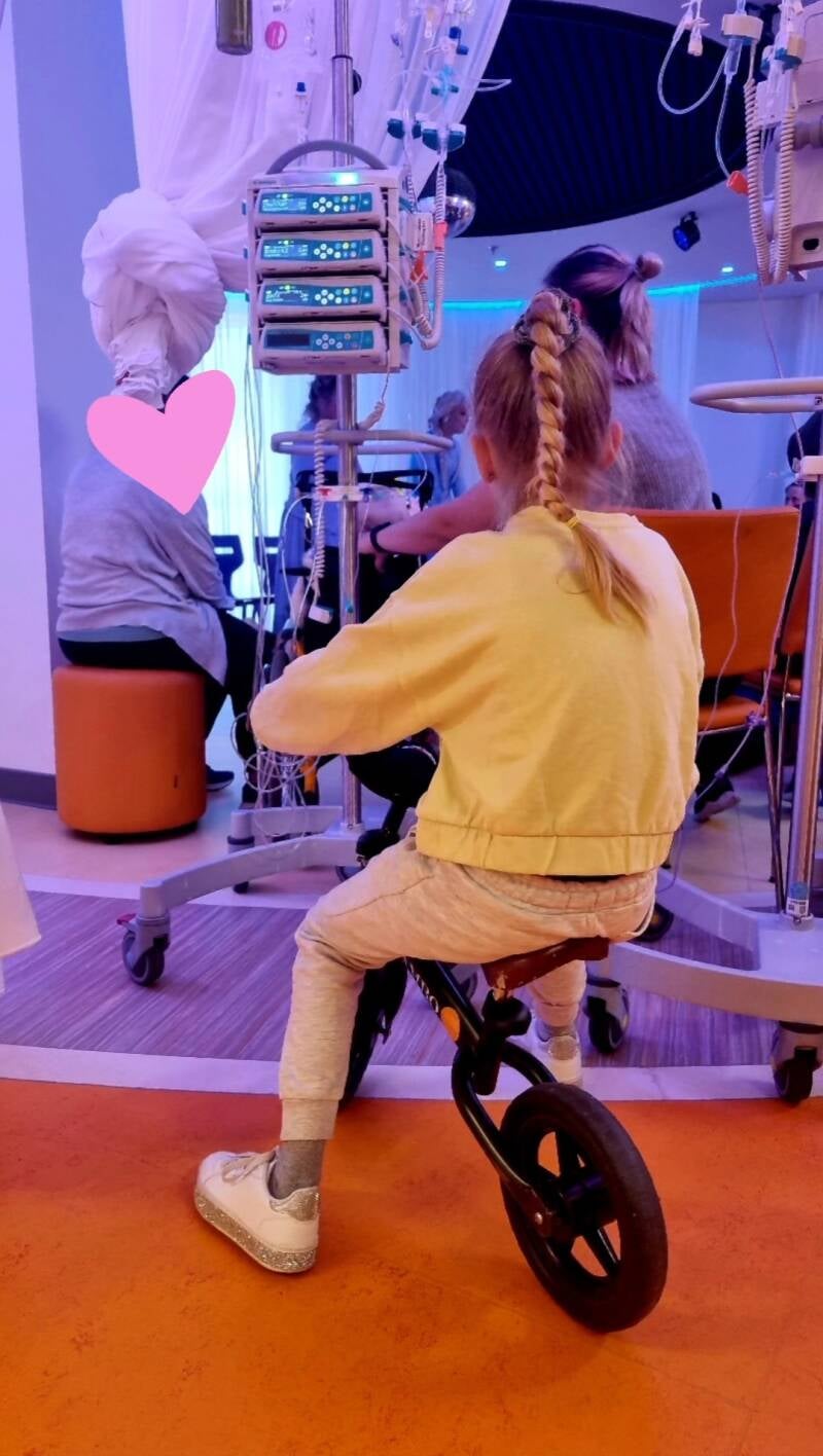 Bij de balie wordt Liv opgevangen, ze fietst rondjes en heeft het grootste plezier.