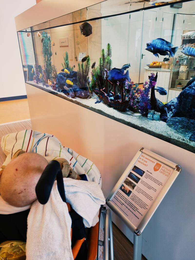 Liv mocht uiteindelijk gelukkig vaker van de kamer af in de avond. Na het avondeten, vóór ze ging slapen gingen we standaard naar de visjes kijken. Hier keken we de hele dag naar uit.