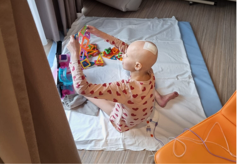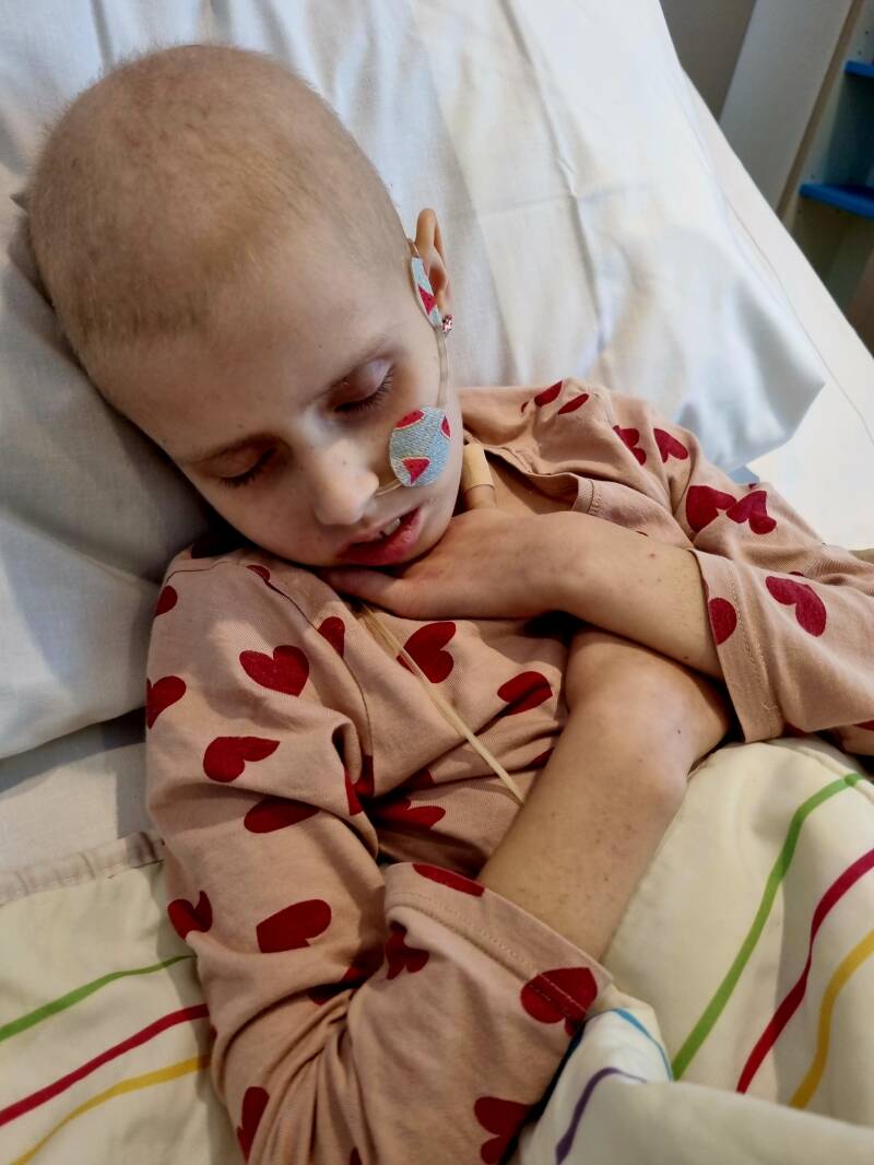 Deze transfusie hielp niet blijkbaar voor de waardes die ze hiermee wilden opkrikken. Dus een paar dagen later kwam er nog zo'n zelfde transfusie. Eigenlijk zou ze ook een bloedtransfusie nodig hebben, maar we hebben in goed overleg mét een fijne verpleegkundige kunnen regelen dat ze deze niet op één dag kreeg én dat ze deze de volgende dag in de ochtend zou krijgen. Dan was het namelijk 1 september en zou de kinderkankermaand worden geopend. Liv is onderdeel van deze campagne geweest, dus wilde ze heel graag bij deze opening zijn (uiteraard met voorwaarden). Zo gezegd zo gedaan. Ze kreeg de volgende ochtend een bloedtransfusie. En wat nu zo naar is aan 4 verschillende verpleegkundigen op één dag als je er al zolang ligt: Ze reageren allemaal anders, kennen Liv haar situatie niet én weten niet dat wij als ouders in staat zijn om goede keuzes te maken. Liv krijgt namelijk standaard verhoging na een (bloed)transfusie. Maar in de praktijk betekent dit paniek. Ik had het namelijk al aangegeven. Ook na de albumine transfusies kreeg ze verhoging/koorts. Waardoor de arts ook aan mij teruggaf, "ja, je zei het nog"... Maargoed, de verhoging na de bloedtransfusie was reden voor extra controles door een vervangend verpleegkundige omdat de andere met lunchpauze was. Hierdoor moesten we lang wachten én dit resulteerde uiteindelijk in het feit dat we bijna die opening gemist hadden. Zo frustrerend op dat moment. Na de transfusies zat ze er slechter bij dan daarvoor.