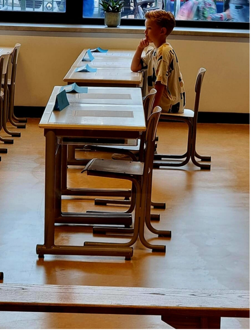 Ik vond deze dag heel moeilijk. Hij keek zo uit naar groep 3 en vond het ook erg spannend. Wat had ik hem hier graag een knuffel willen geven.
