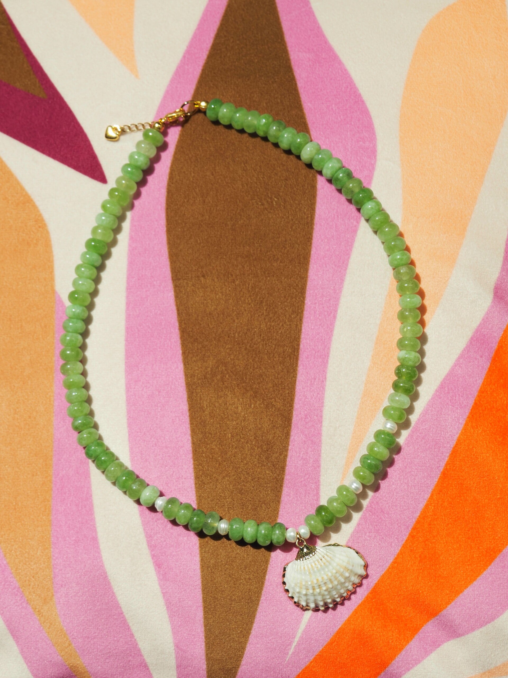 Wat een heerlijke zomer ketting met beach vibe. Hiermee kom je helemaal in de strand sferen. De Jade kraal is een prachtige natuursteen die staat voor geluk, voorspoed, harmonie en bescherming. Deze steen staat bekend om de kalmerende energie. Met deze ketting trek je positieve energie aan en weer je negatieve invloeden van je af.