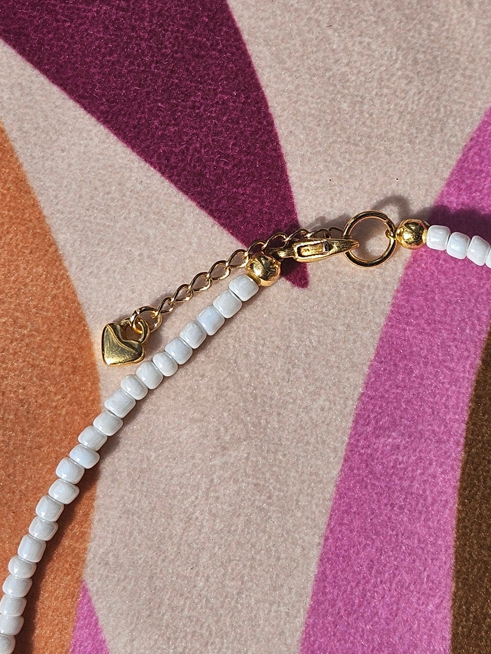 Materiaal: rocaille kralen met stainless steel onderdelen.